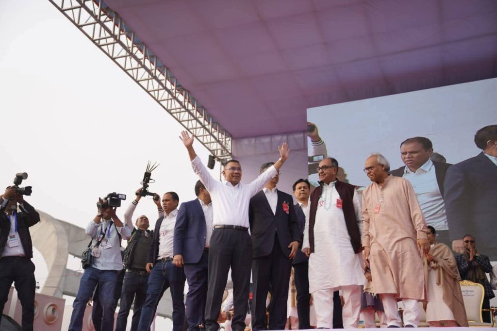 তিনি বলেন, ‘আজ আমার সঙ্গে এই মঞ্চে বহু জাতীয় নেতা ও নেতৃবৃন্দ উপস্থিত আছেন। মঞ্চে যারা আছেন, মঞ্চের বাইরে যারা আছেন আমরা সবাই মিলে এই দেশকে নেতৃত্ব দিয়ে বাংলাদেশের জনগণের প্রত্যাশিত সেই বাংলাদেশ গড়ে তুলতে চাই। যেকোনো উসকানির মুখে আমাদের ধীর ও শান্ত থাকতে হবে। প্রিয় ভাই ও বোনেরা, আমরা বাংলাদেশে শান্তি চাই, আমরা বাংলাদেশে শান্তি চাই, আমরা বাংলাদেশে শান্তি চাই। আমি আপনাদের সামনে বলতে চাই, বাংলাদেশের জাতীয়তাবাদী দলের একজন সদস্য হিসেবে আমি বলতে চাই ‘ I have a plan for the people of my country, for my country. এই পরিকল্পনা দেশের মানুষের জন্য, দেশের উন্নয়নের জন্য, দেশের মানুষের ভাগ্যের পরিবর্তনের জন্য।
